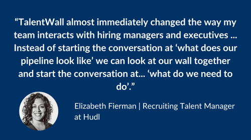 This can turn formerly grueling weekly touch-base sessions into a quick “Walk on the Wall” to get a clear picture of where hiring is at for each role, cutting down on admin time and freeing up both parties to get on with other tasks.