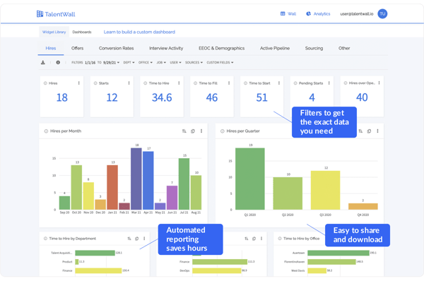 Improve diversity and inclusivity with visibility into demographics for each open role. Is there a lack of women or minorities applying? It might be time to look at the job descriptions being used to make sure they aren’t perpetuating unconscious bias.